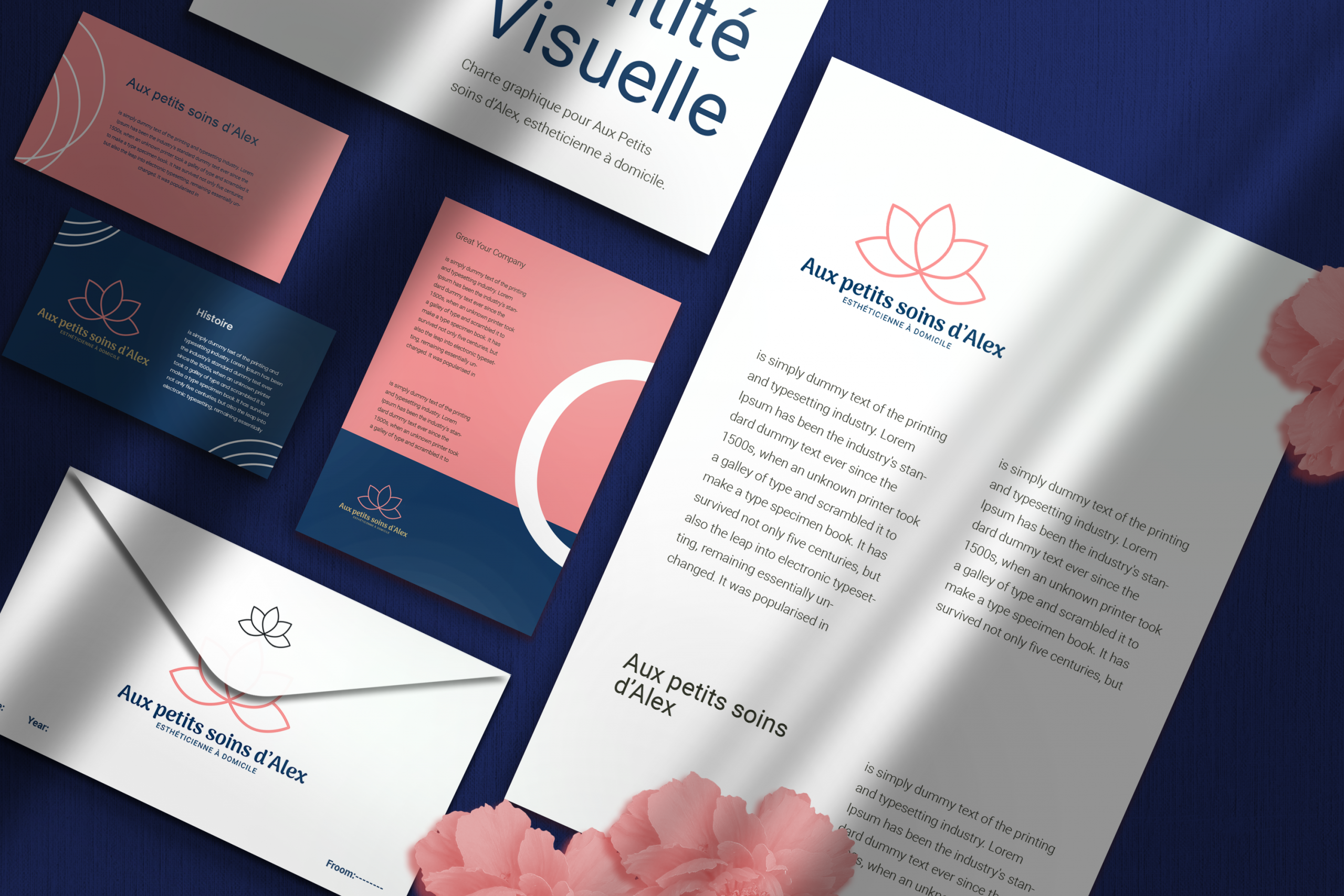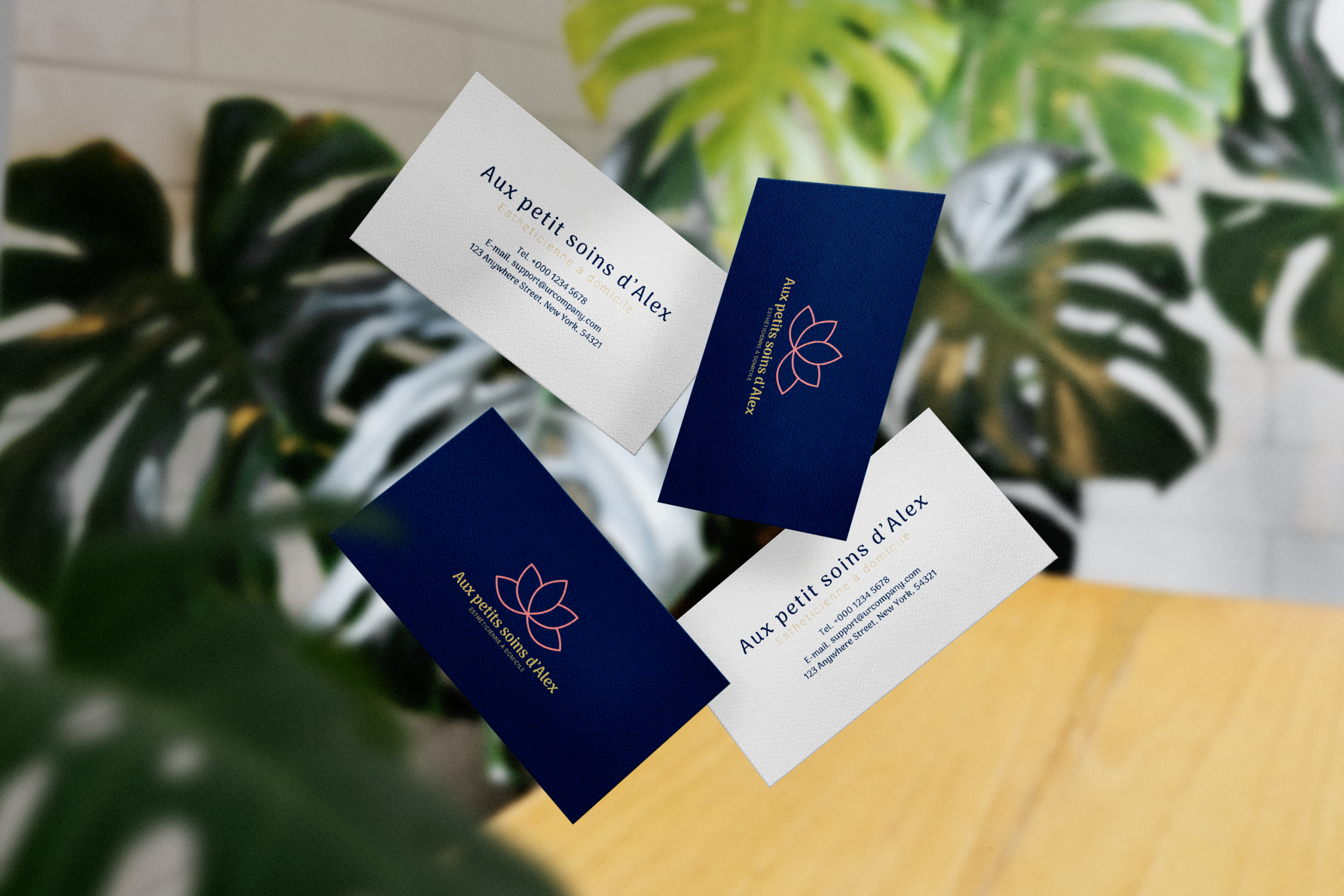 Nous avons conçu l’identité visuelle complète d’Alexandra Savry, esthéticienne et fondatrice d’Aux petits soins d’Alex : création du logo, définition des couleurs et d’un univers en parfaite cohérence avec son positionnement et son expertise beauté.